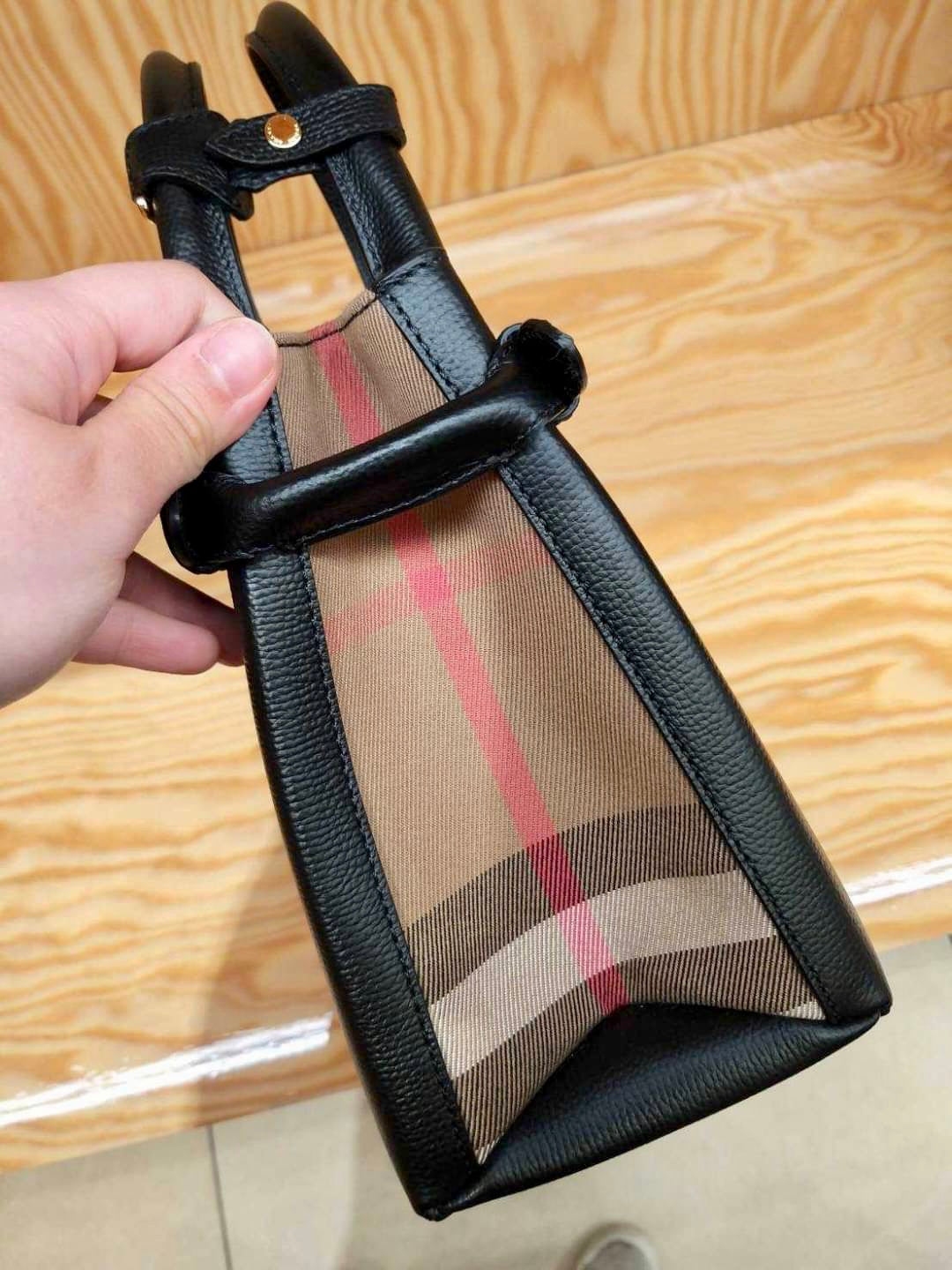 搭配側面經典house格紋 肩帶可摘、自重很輕