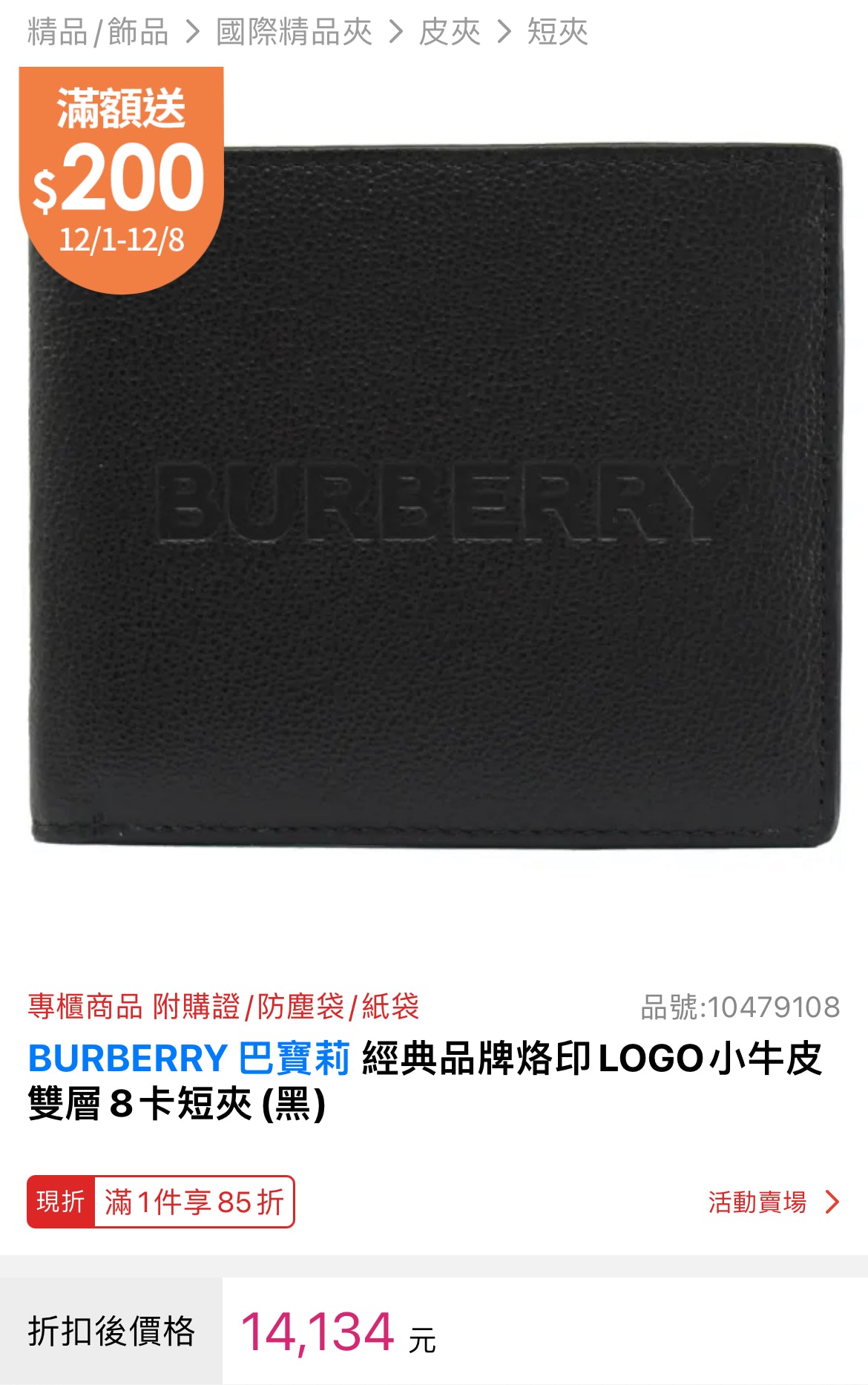 @Burberry▪️Embossed Logo 男女款壓印八卡雙開短夾/270P245 🔥下殺🉐12030
