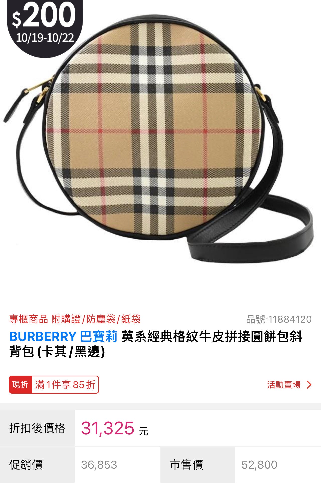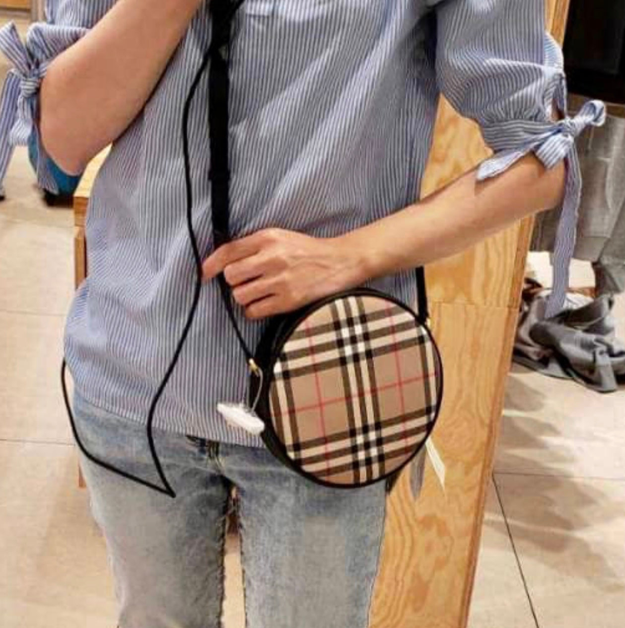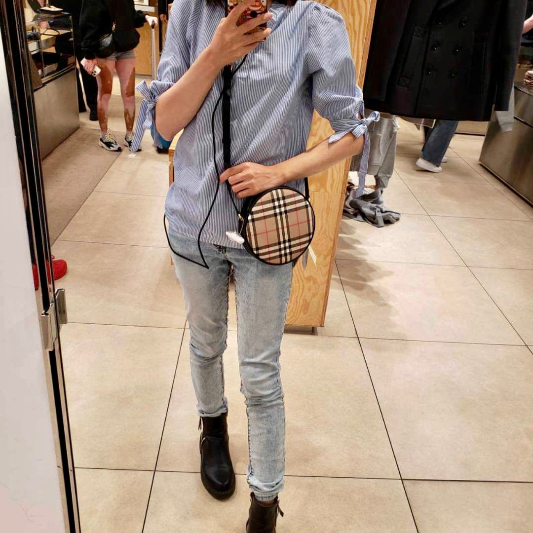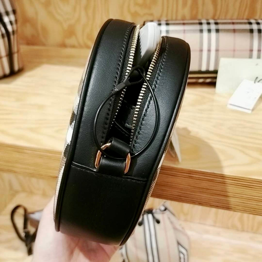 @Burberry New Louise 格紋拼皮圓餅包/P620 🔥下殺🉐28900