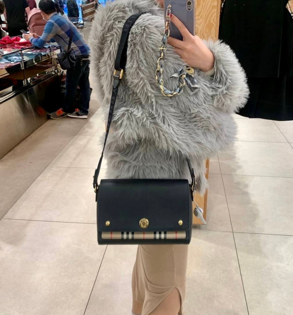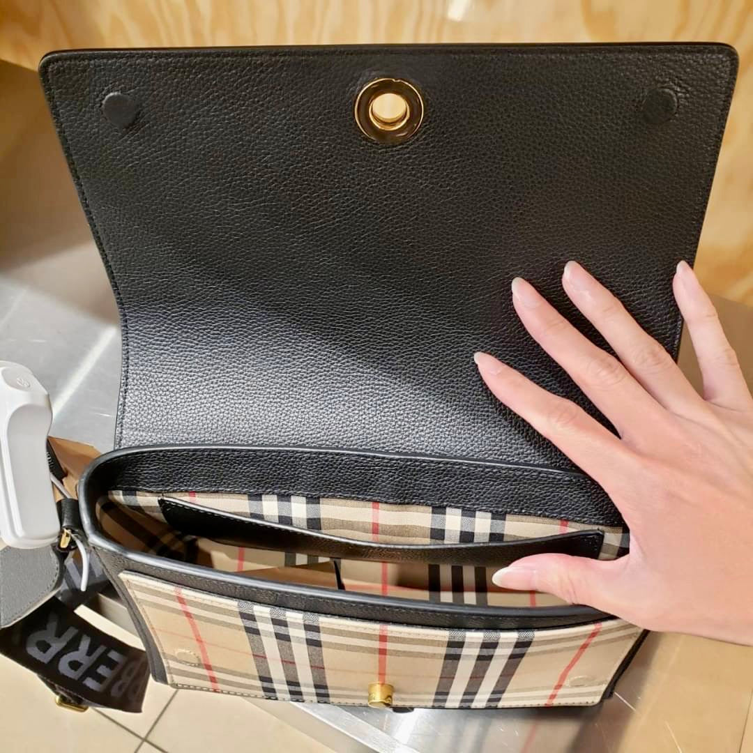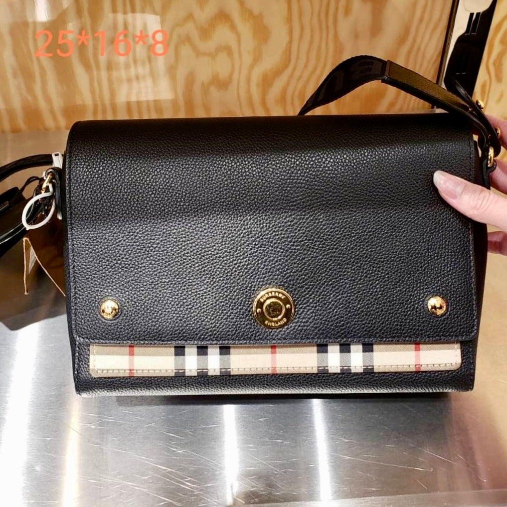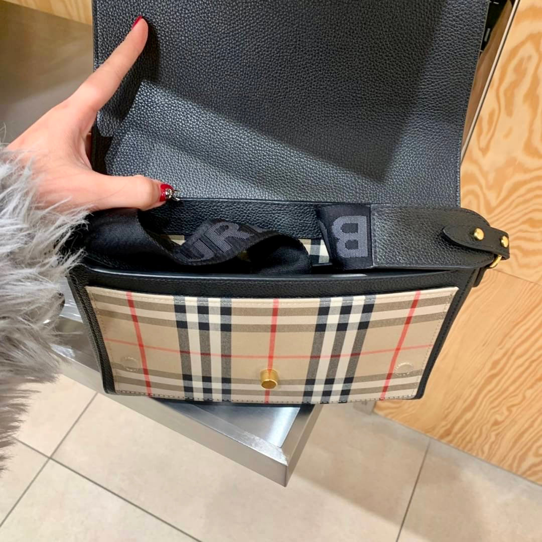 Burberry Note 格紋拼皮翻蓋側背包/1150H1035 💚折扣🉐42400
