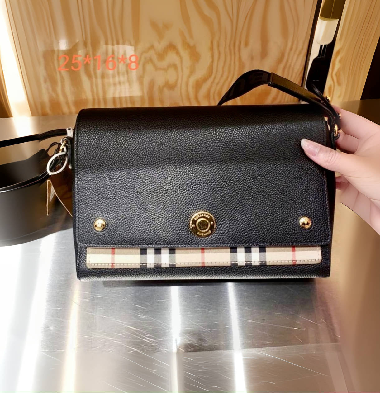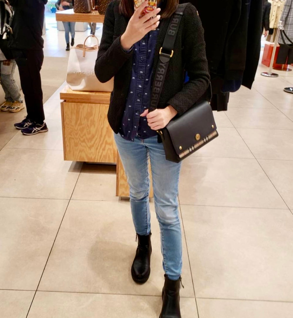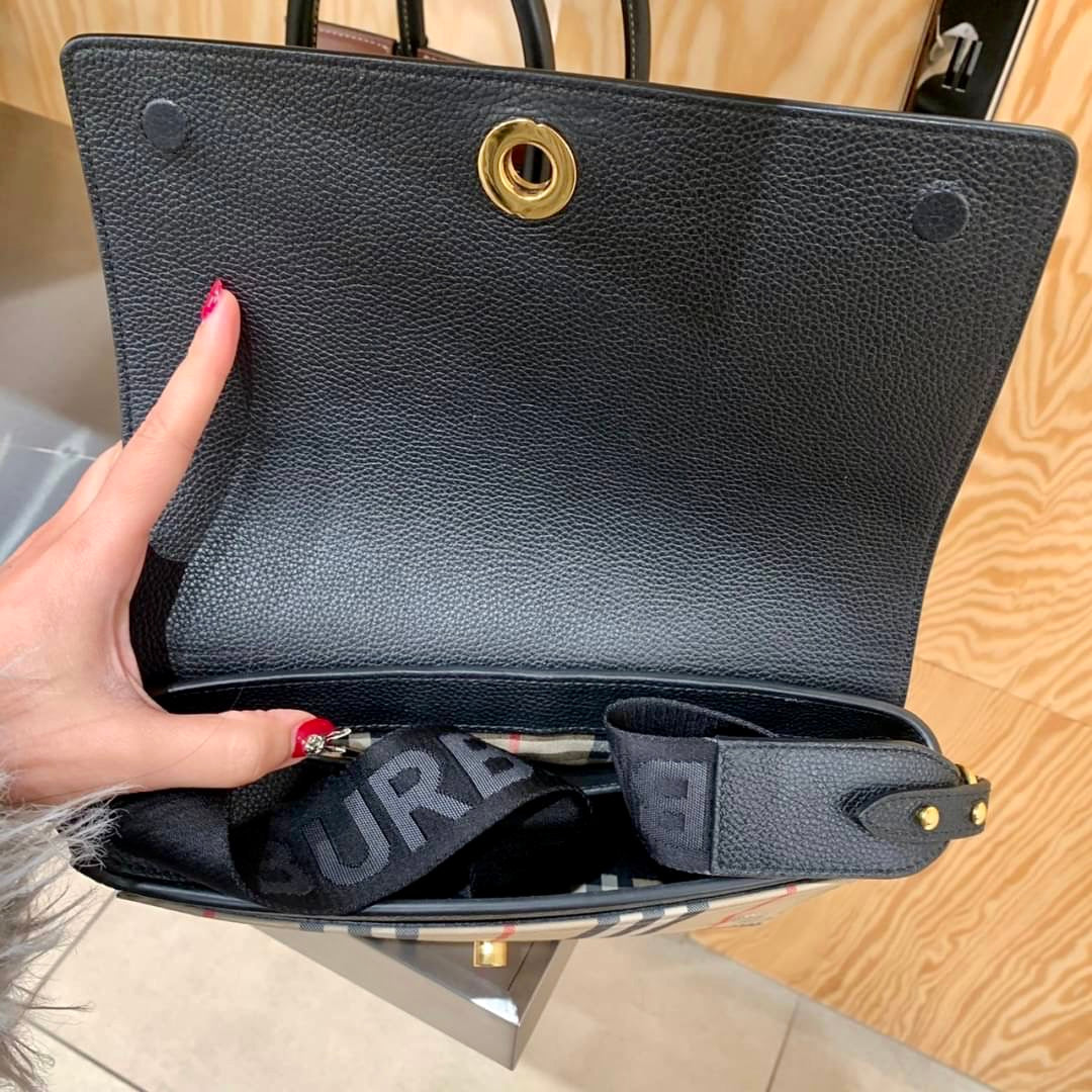 Burberry Note 格紋拼皮翻蓋側背包/1150H1035 💚折扣🉐42400