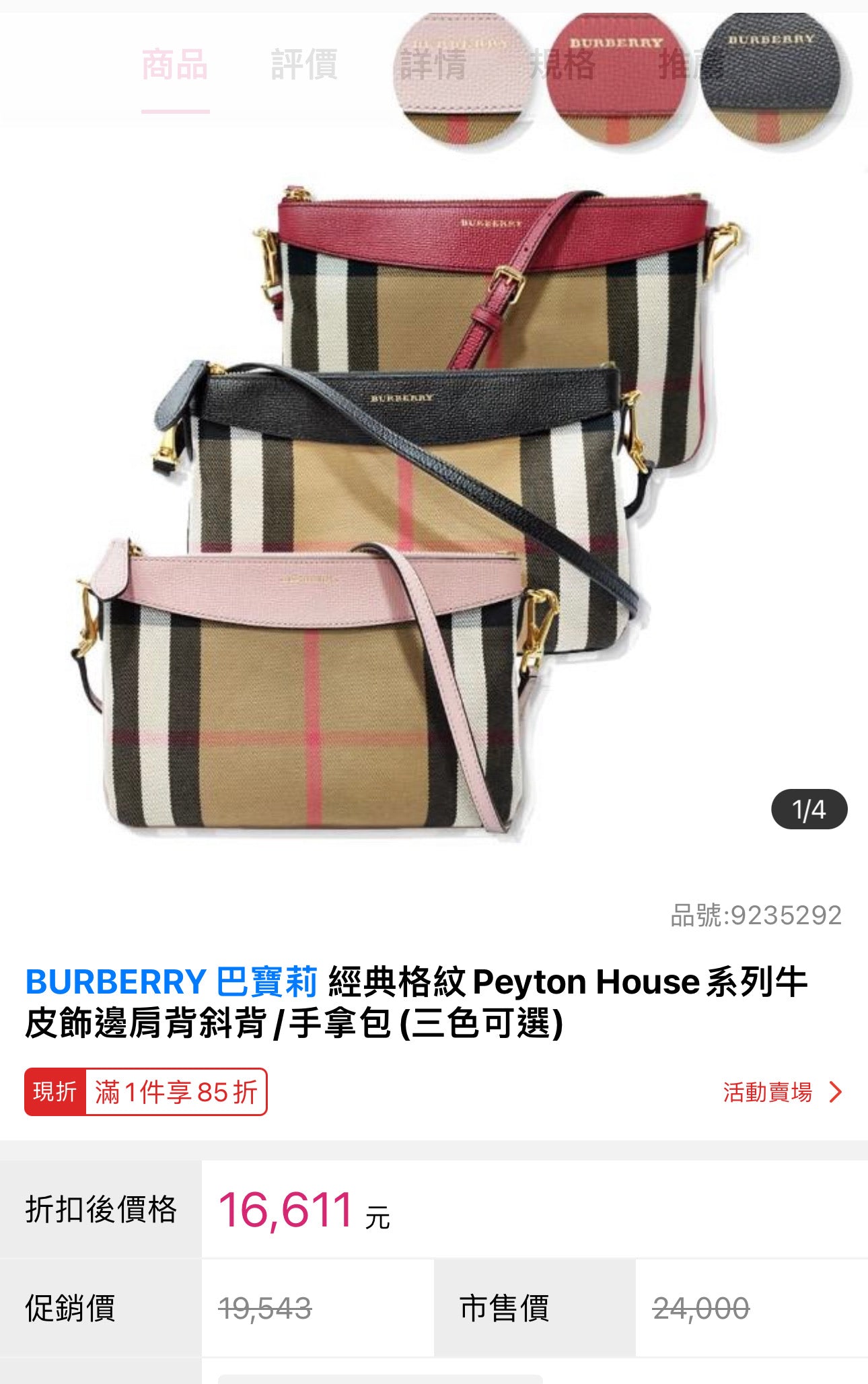 @Burberry▪️Peyton 格紋肩背手拿包/P295 🔥下殺🉐14280