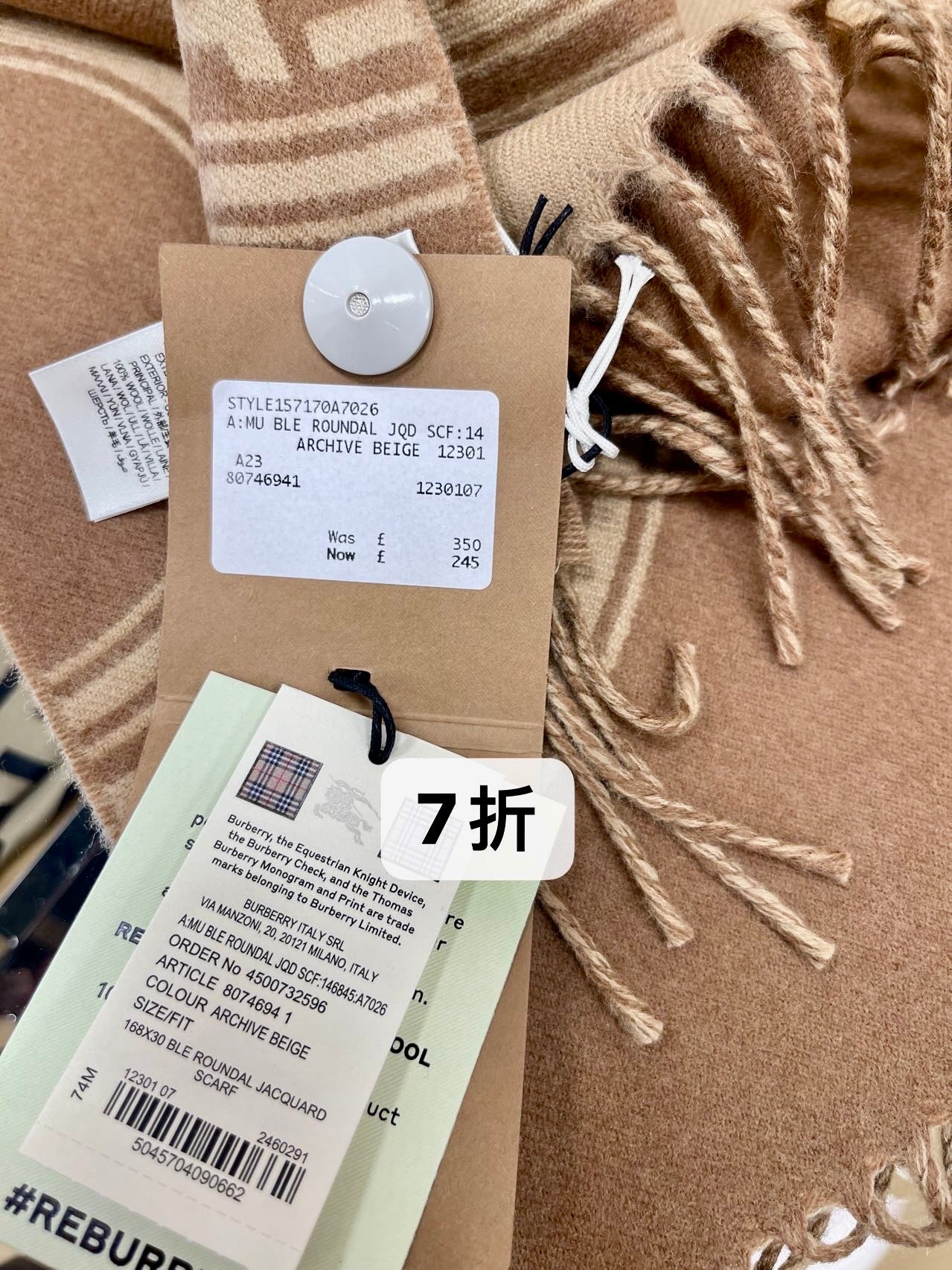 @Burberry Roundal 圍巾/350P245 🔥折上七折🉐9220