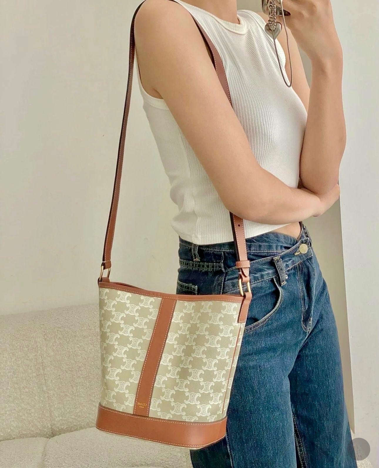 @Celine Outlet Bucket S 小款白老花水桶包