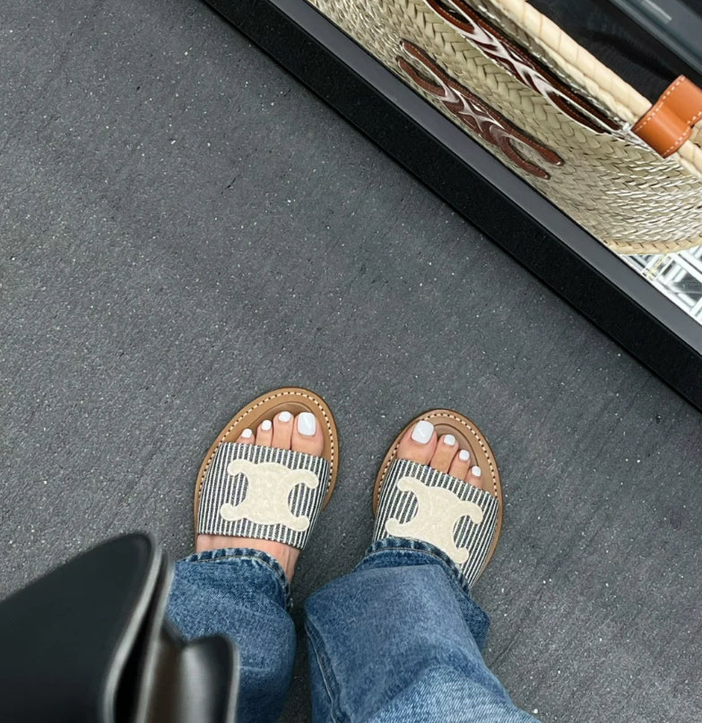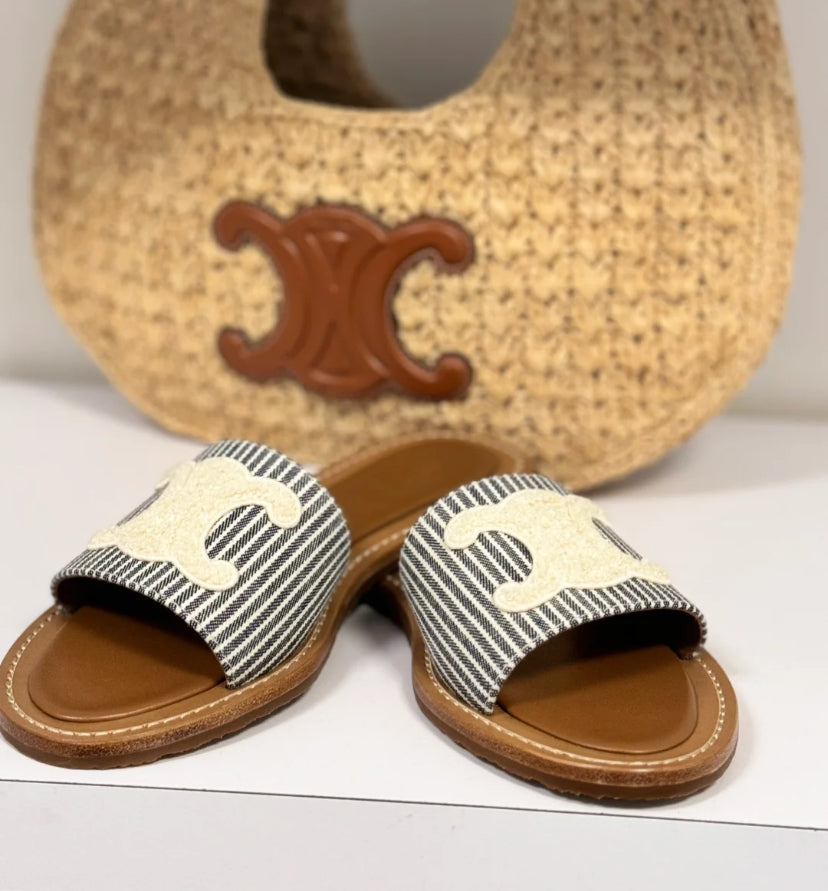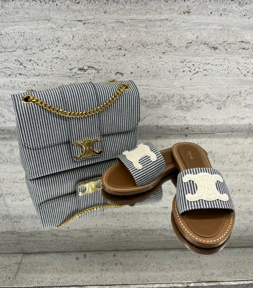 Celine Lympia Mule 帆布條紋拖鞋/590E650 🉐23750🇪🇺