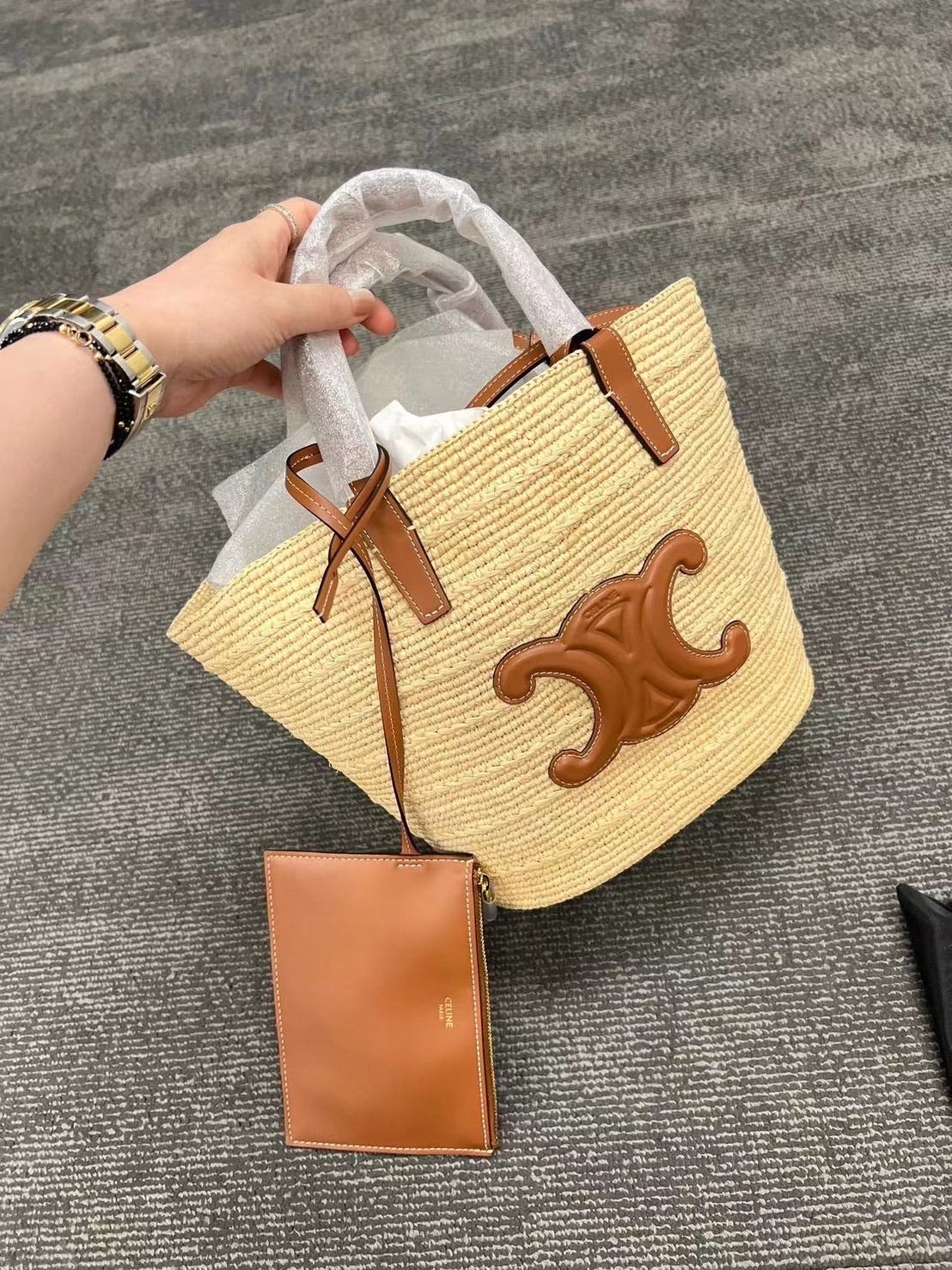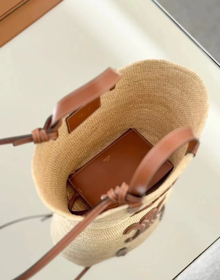 Celine Teen Supple Panier 凱旋門浮雕拉菲草編包/1300E1400 🉐49900🇪🇺