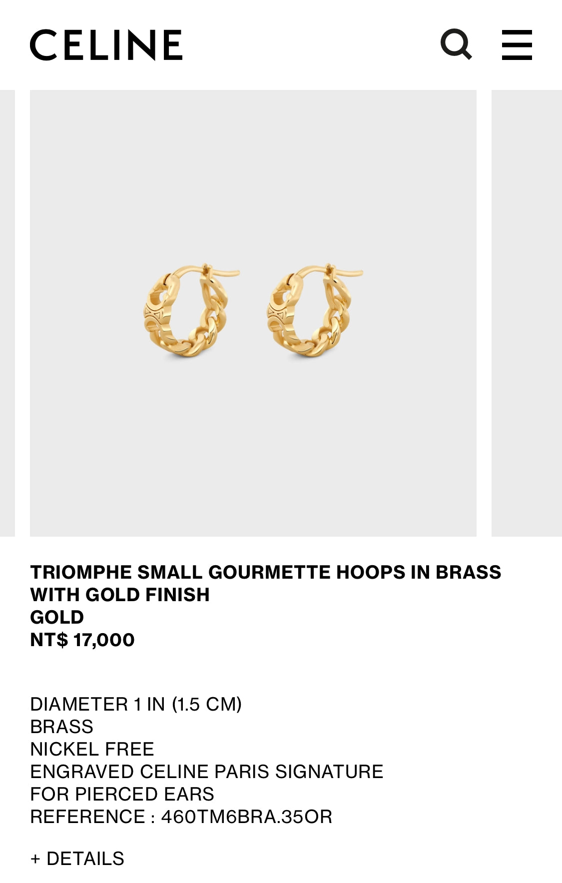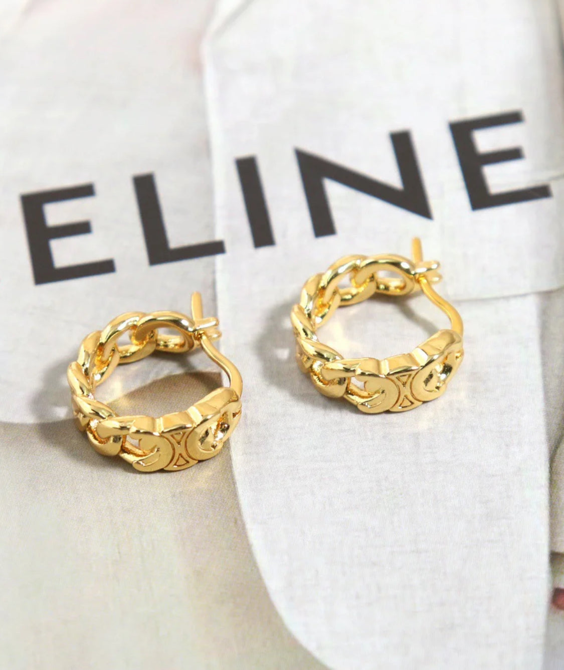 Celine Triomphe Small Gourmette Hoops 金色圈型耳環/365E390 🉐14650🇪🇺