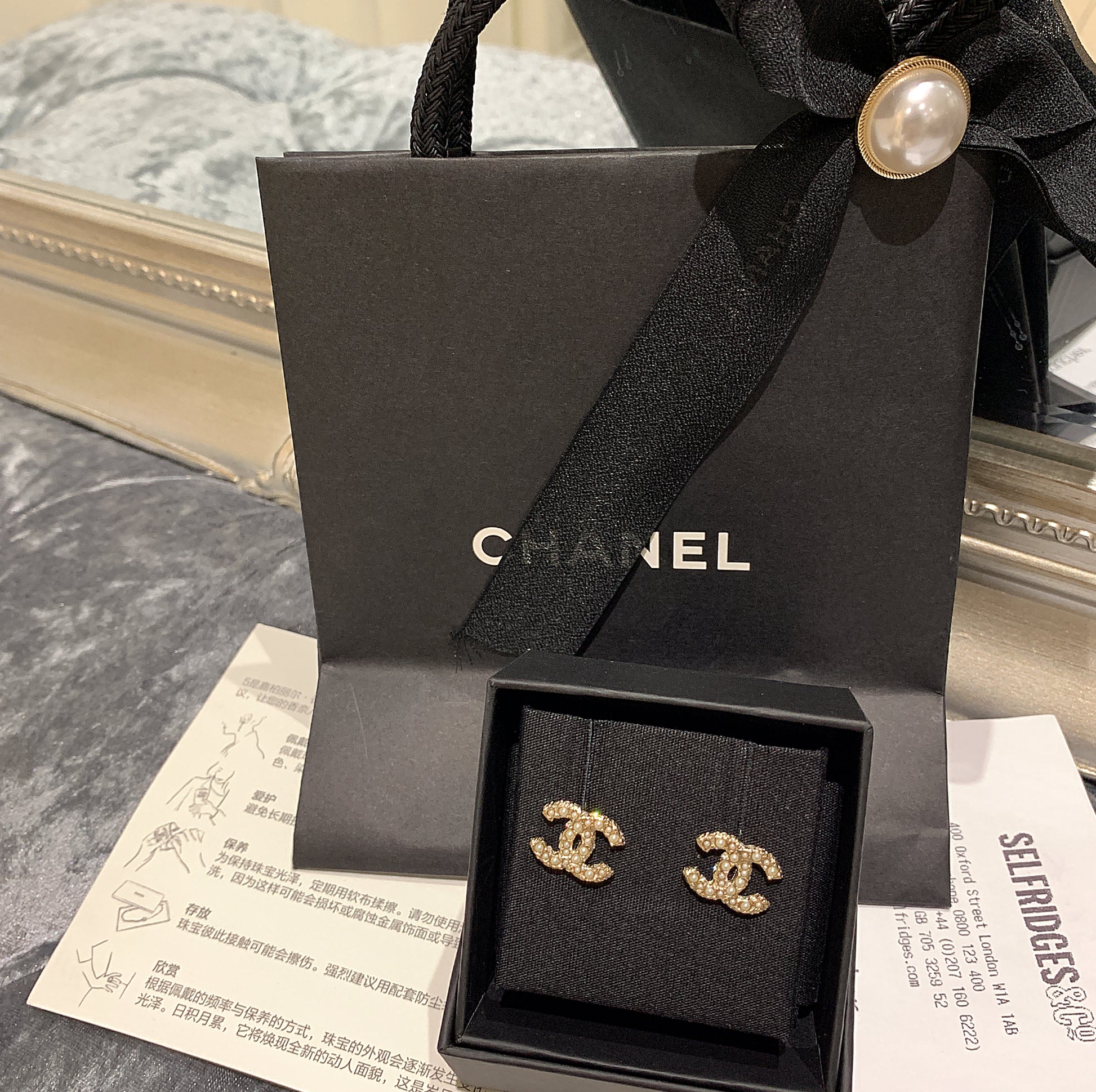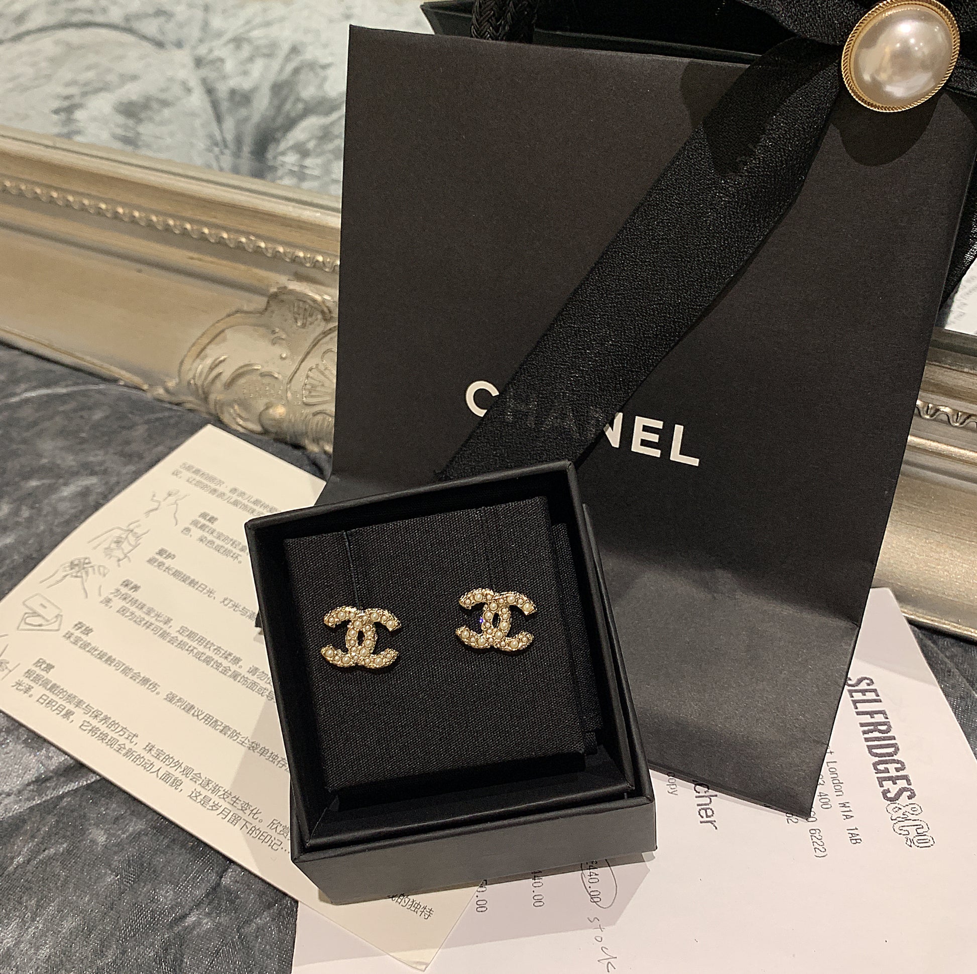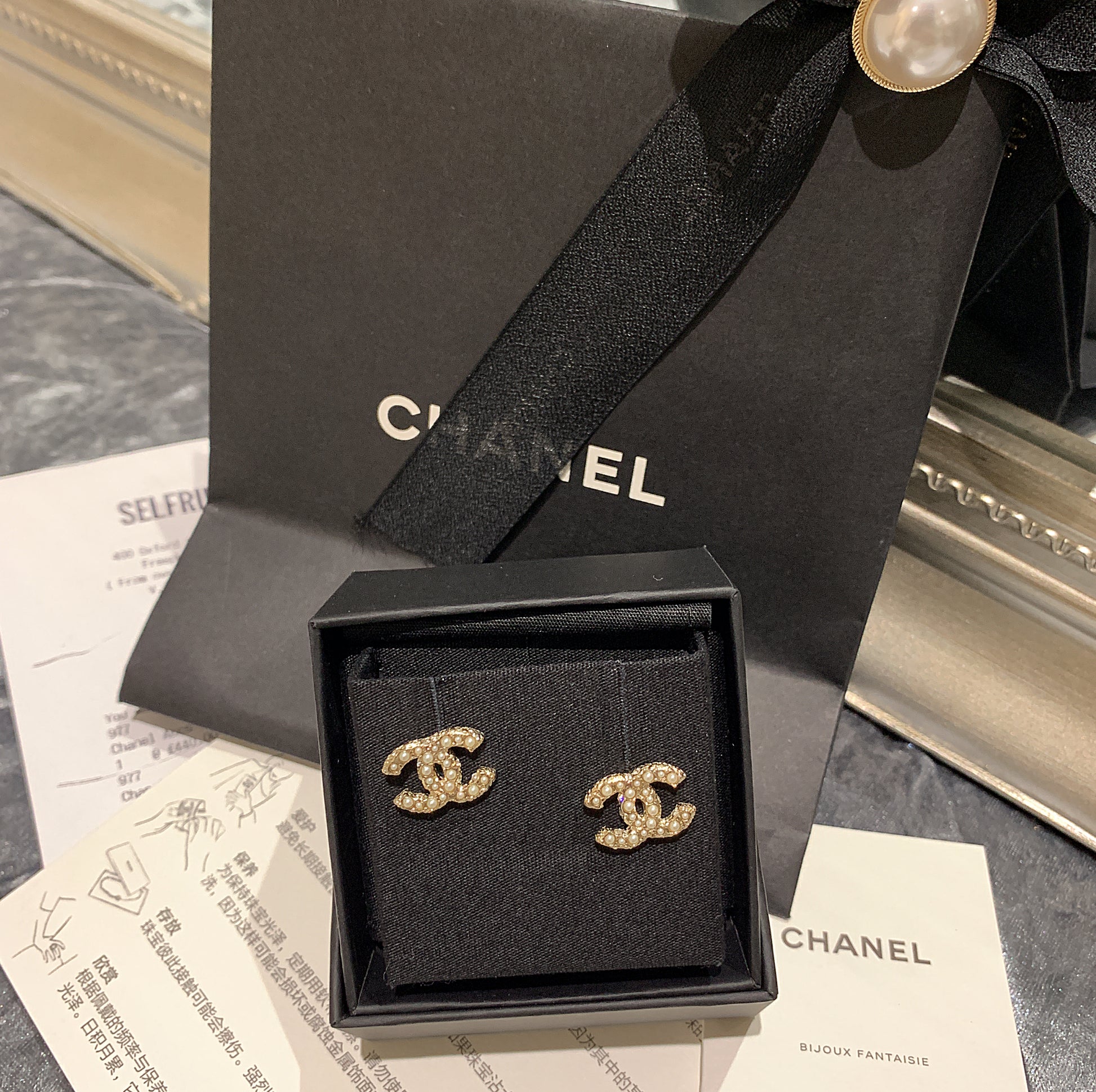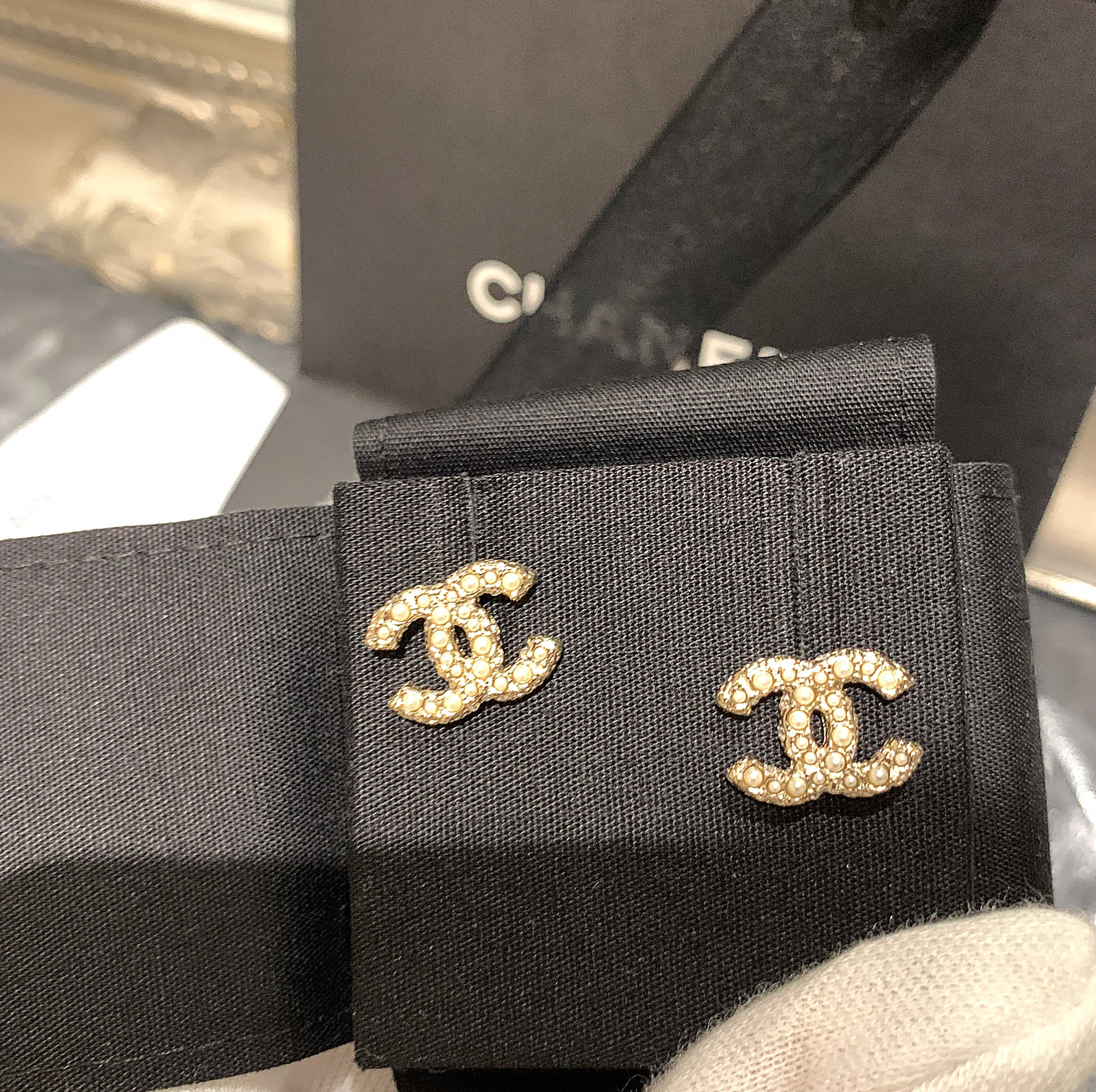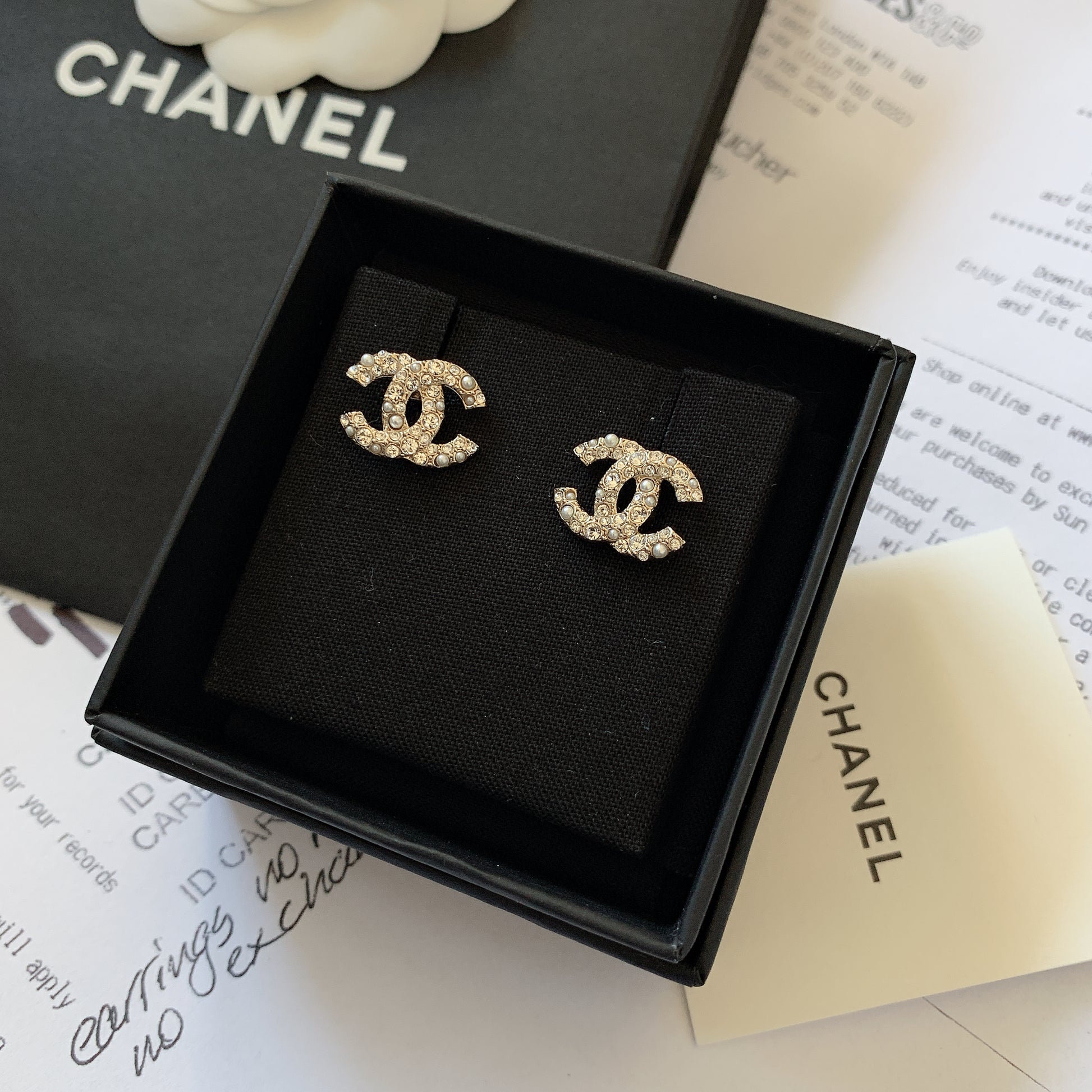 CHANEL✨ CC DIAMANTE METAL EARRINGS 經典珍珠水鑽耳環 AB5738 -