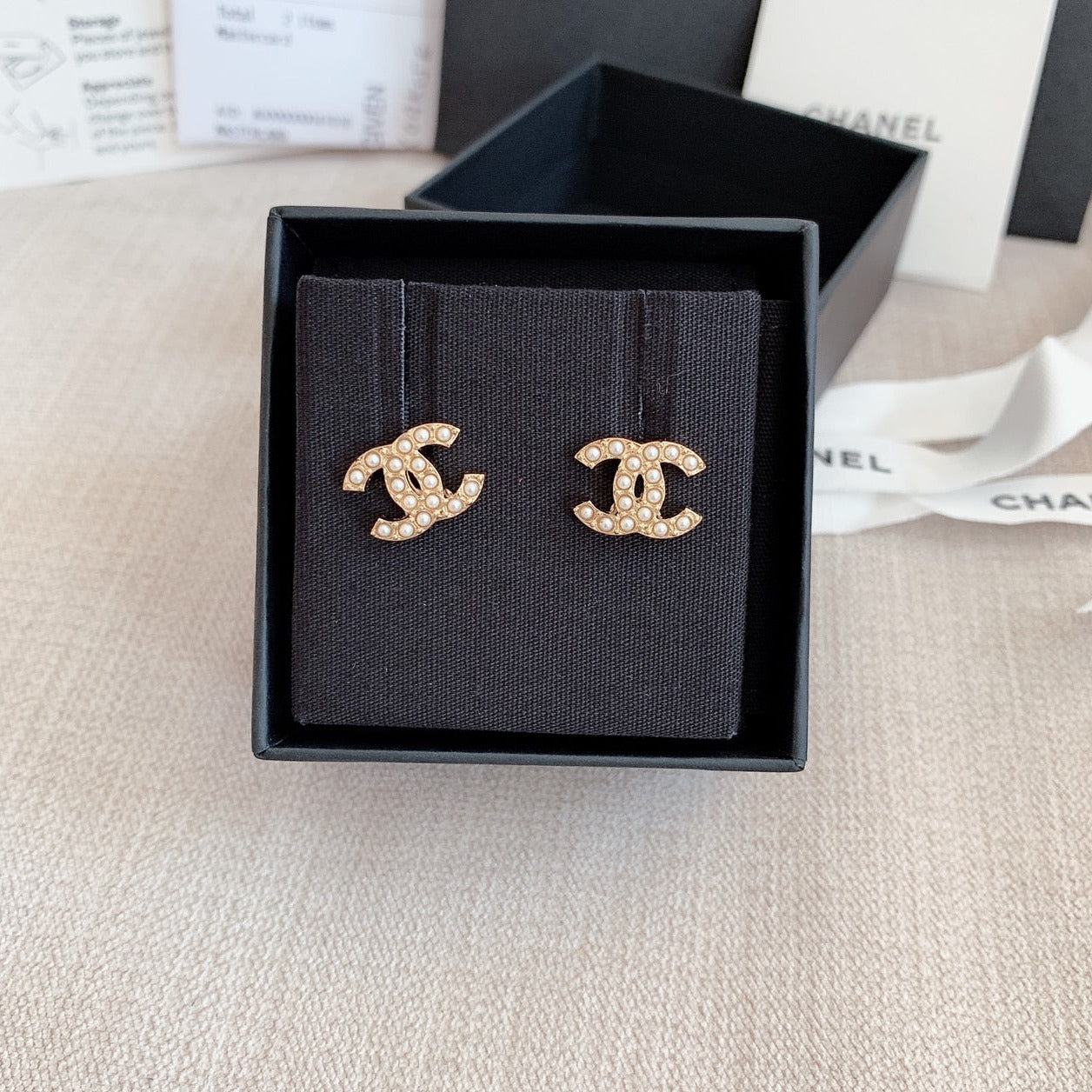 CHANEL✨ CC PEARL GOLD EARRINGS 排珍珠金耳釘 AB8917 -