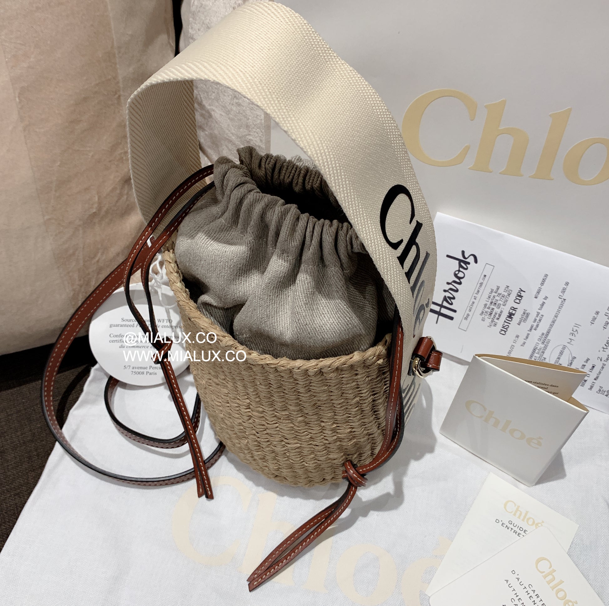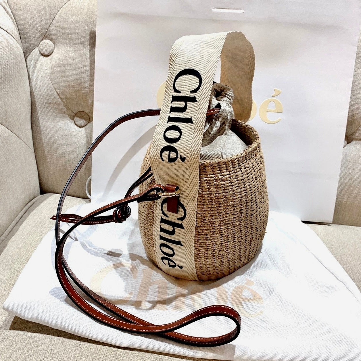 Chloe▪️Woody Basket S 小草編水桶包/550c452 ㊙️折扣🉐18980💰