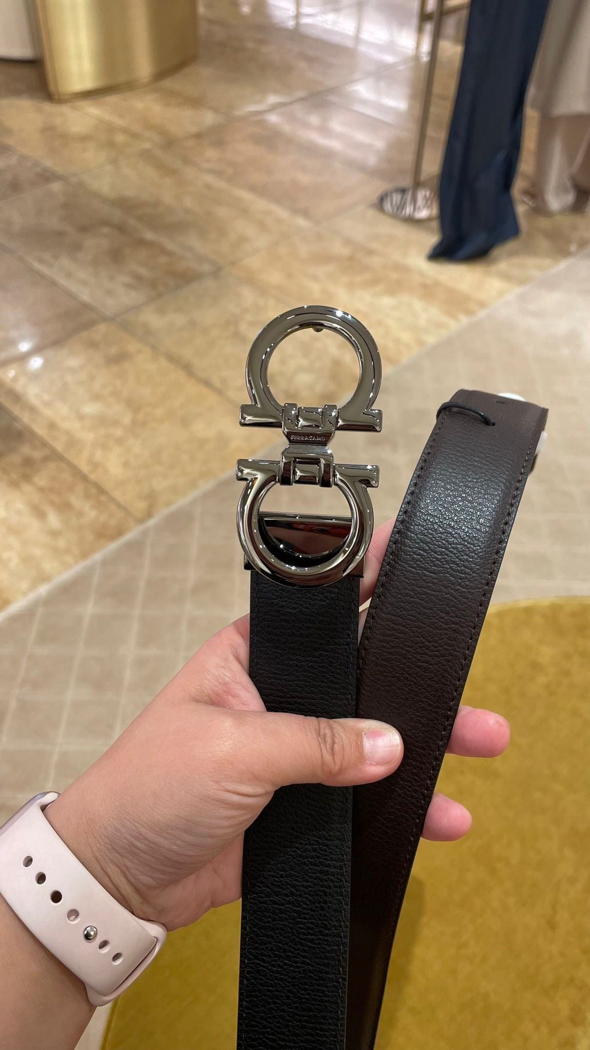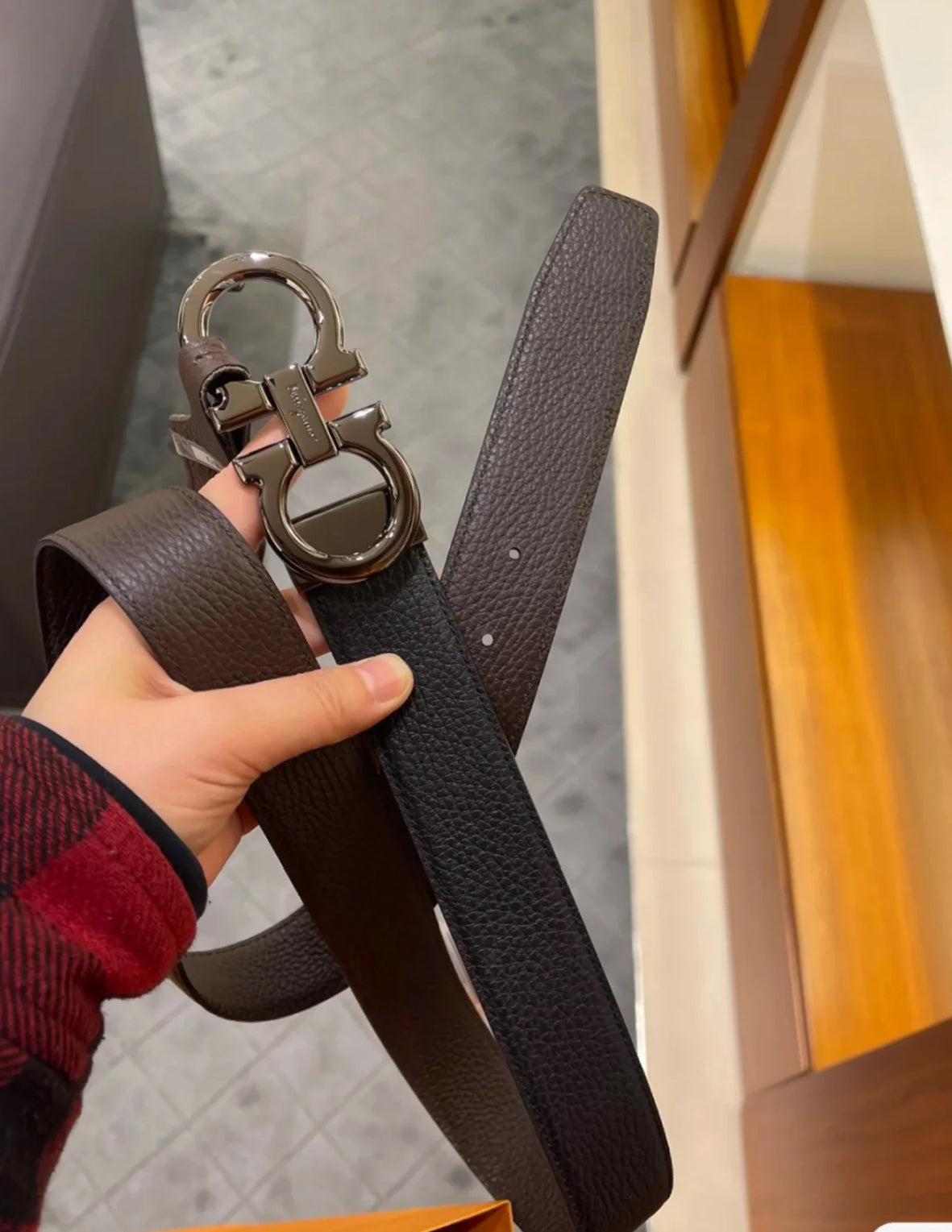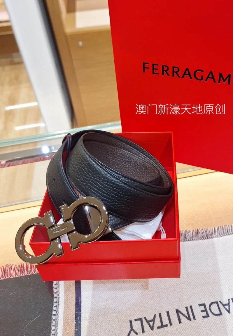@Ferragamo Double Adju 男款雙面黑咖銀扣皮帶/325P260 🔥下殺🉐12500