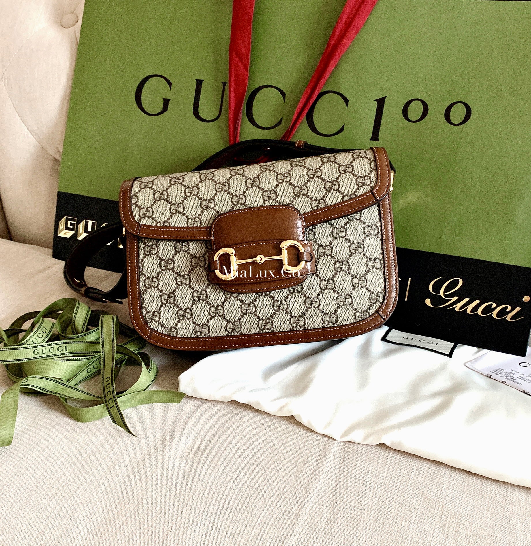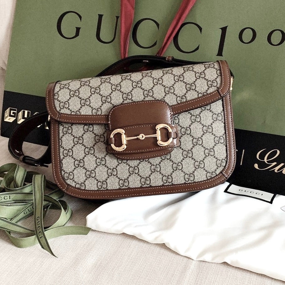 *Gucci Horsebit1955 馬鞍包迷你 經典棕色老花