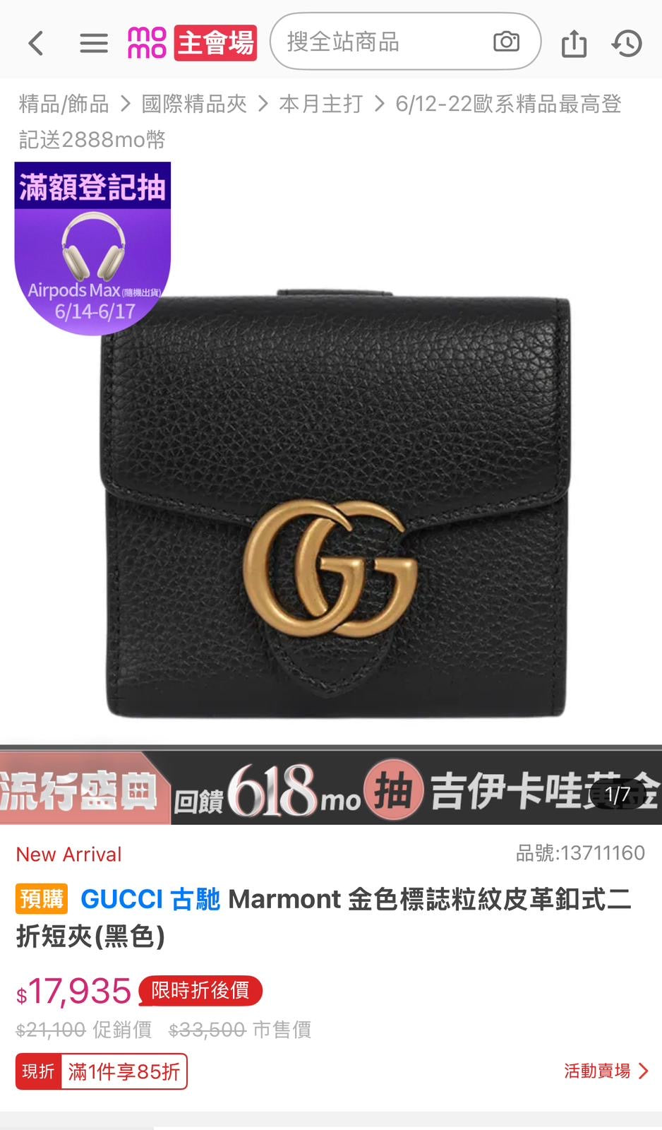 這顆真的是經典到不行,美到不行的馬夢短夾,之前從來沒看過最近才在Outlet 出現囉,真心推薦馬夢經典的GG配上超耐操的荔枝魚子醬皮, Mia✨個人覺得比正櫃上的馬夢皮夾還要更有設計感更經典耐久,復古中帶有點時尚感,黑金白金都好美😍