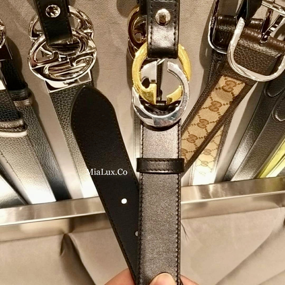 @Gucci GG 男生款金銀雙G皮帶/P255