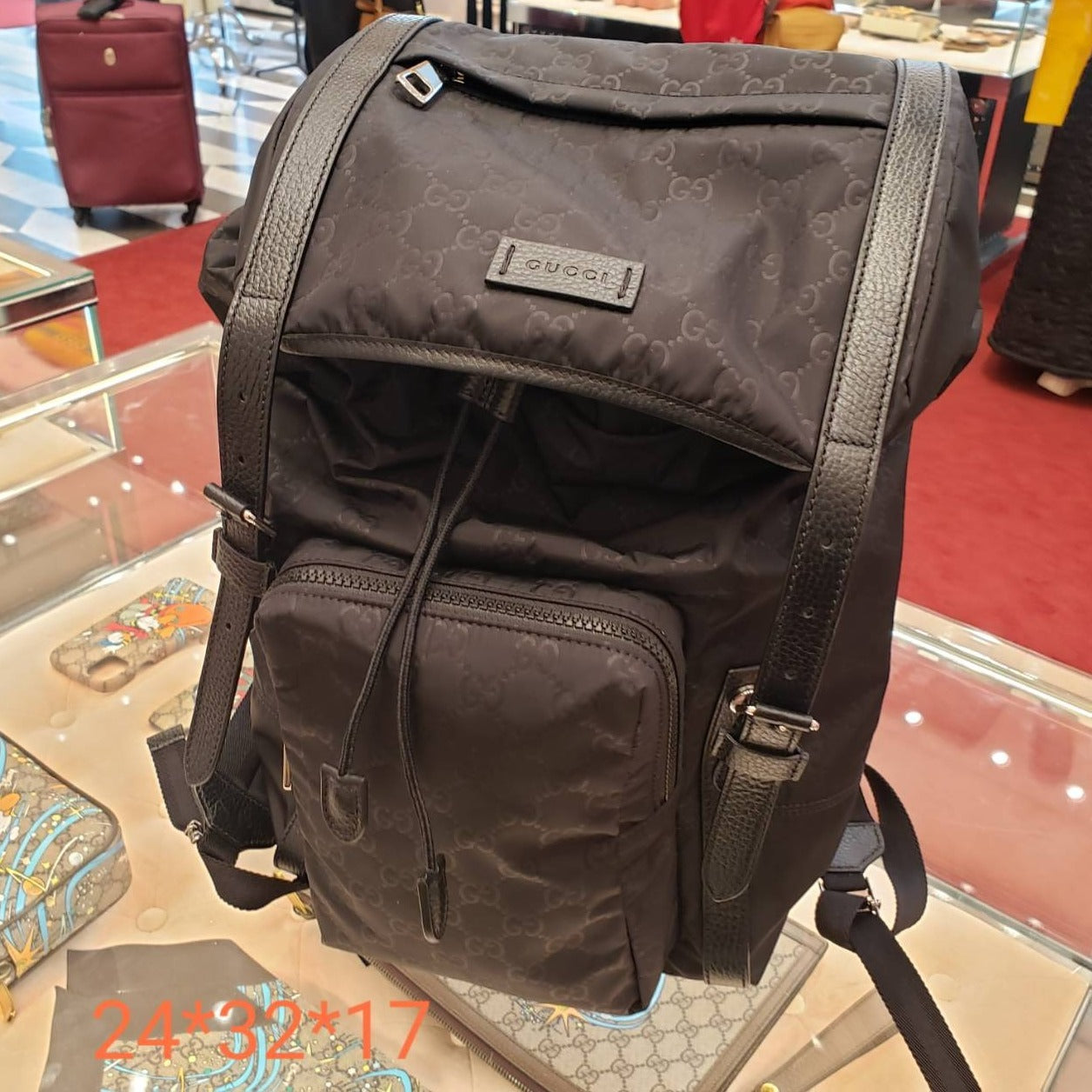 *@Gucci Nylon 男生款黑後背包/P540