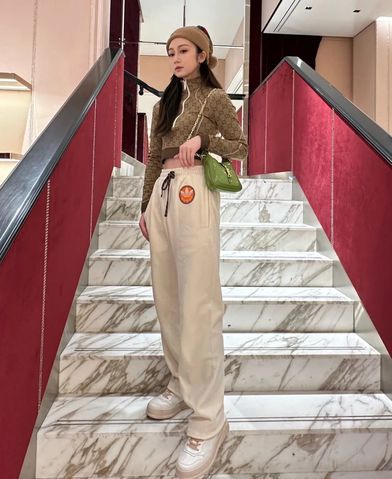 超帥爆款Gucci x Adidas 聯名白色運動褲
