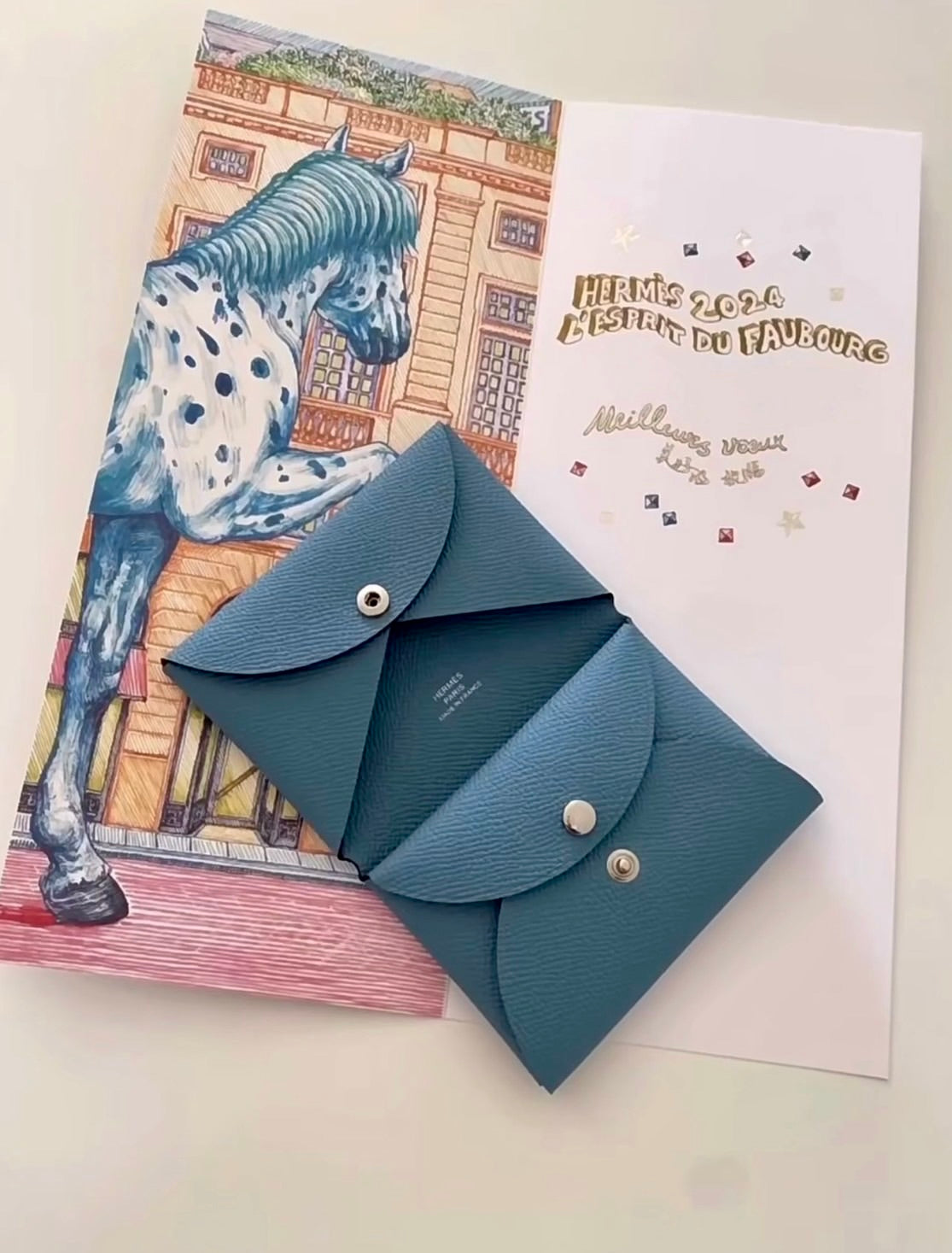 Hermes Calvi Duo Epsom皮卡夾錢包/455 ✨🉐20110