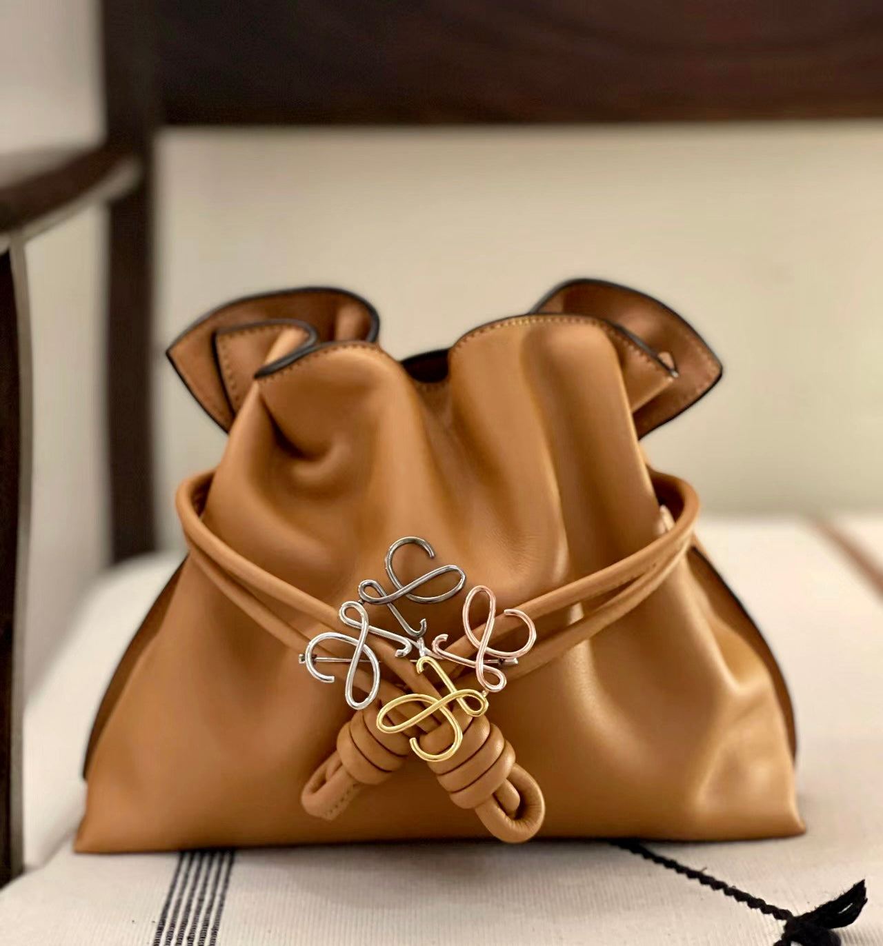 超級聰明的巧思就是搭配上Anagram 胸針,依照您選擇的福袋皮顏色,可搭配選擇銀色金色或者是混合色的胸針,實在是充滿設計感用心又好看,同時一眼就增加品牌辨識度!
