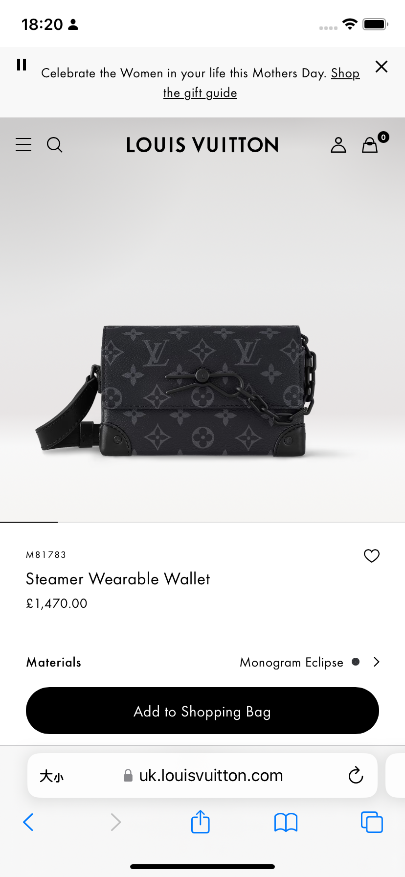 LV Steamer Wearable 男款盒子包/1500✨🉐64000