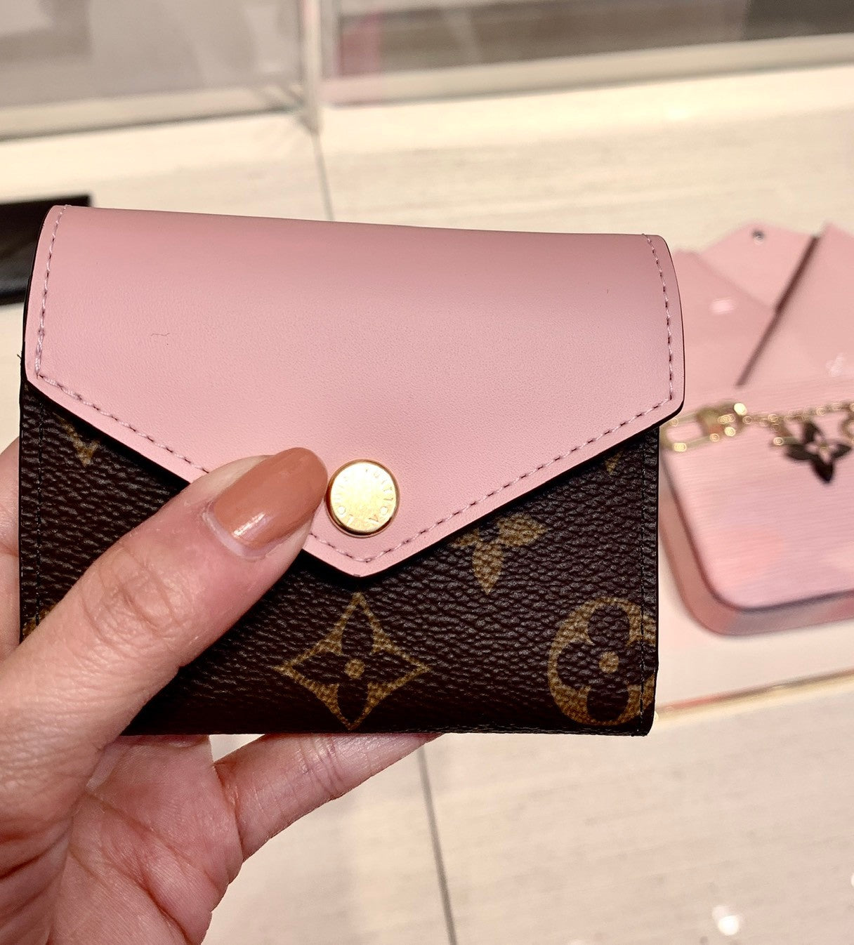 LV Zoé 牛皮拼老花信封短夾/400✨🉐17800