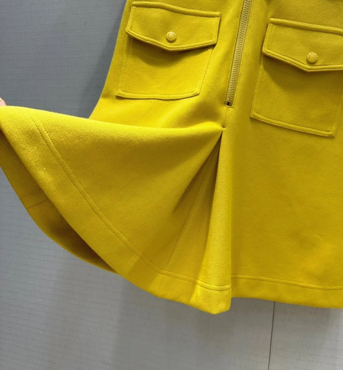 拉鍊式螺紋立領 收腰壓褶A字裙擺版型百搭顯瘦