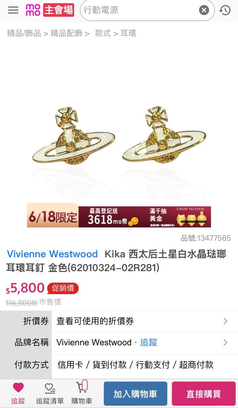 *現貨*@Vivienne Westwood土星耳環 P3500 /T6000