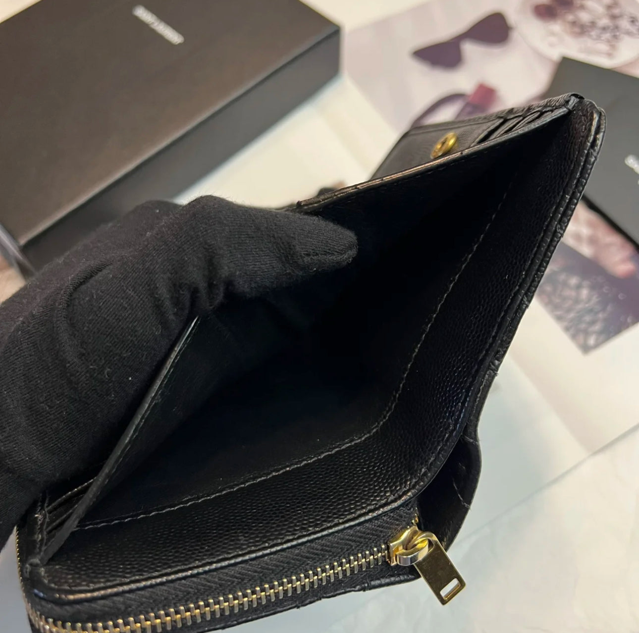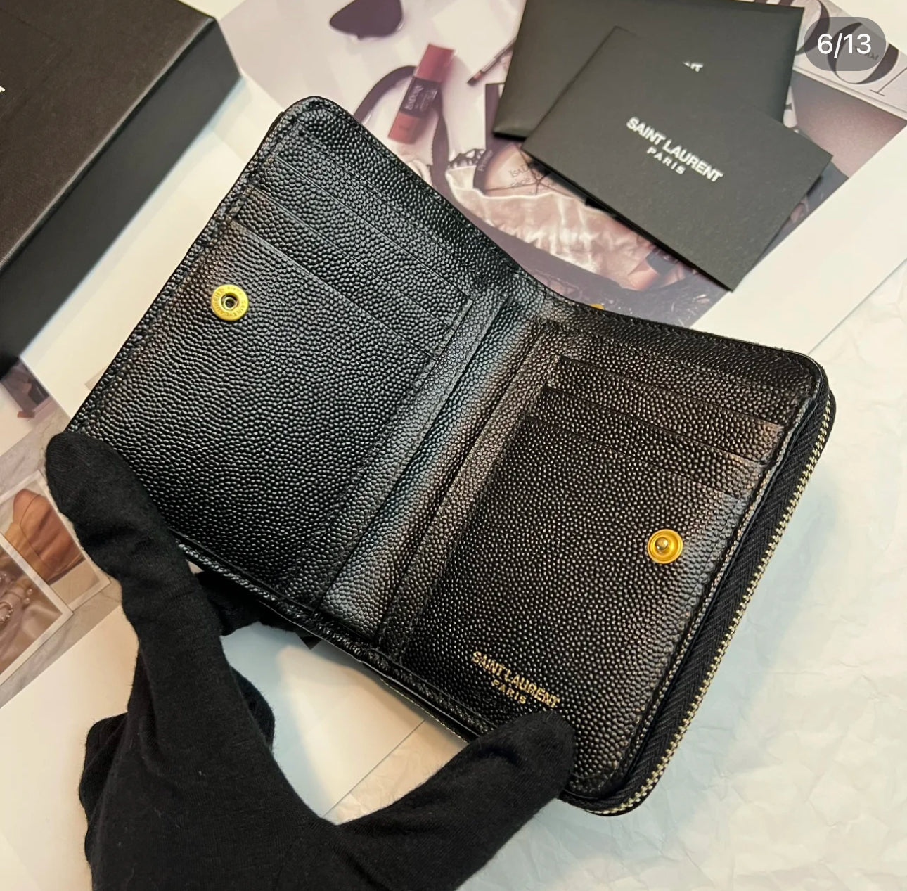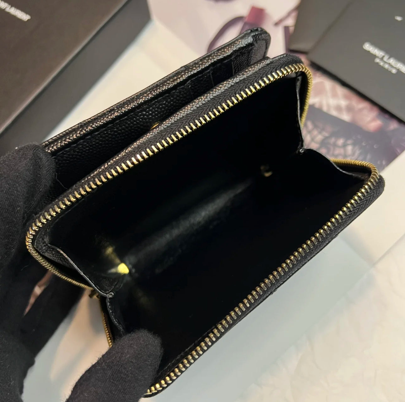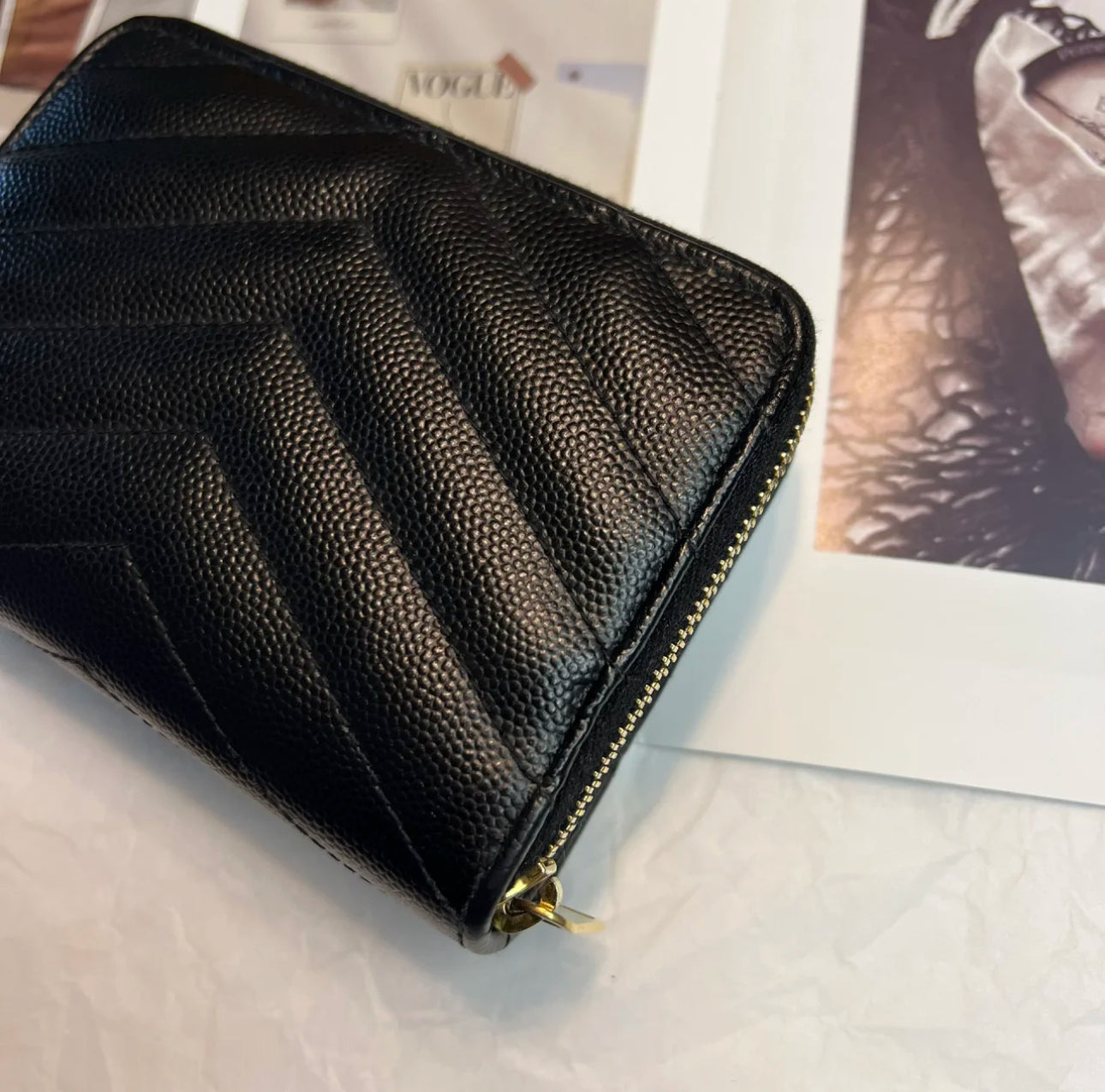 YSL Cassandre Matelasse 魚子醬粒面牛皮拉鍊錢包-黑金/525C473 ㊙️折扣🉐19870💰