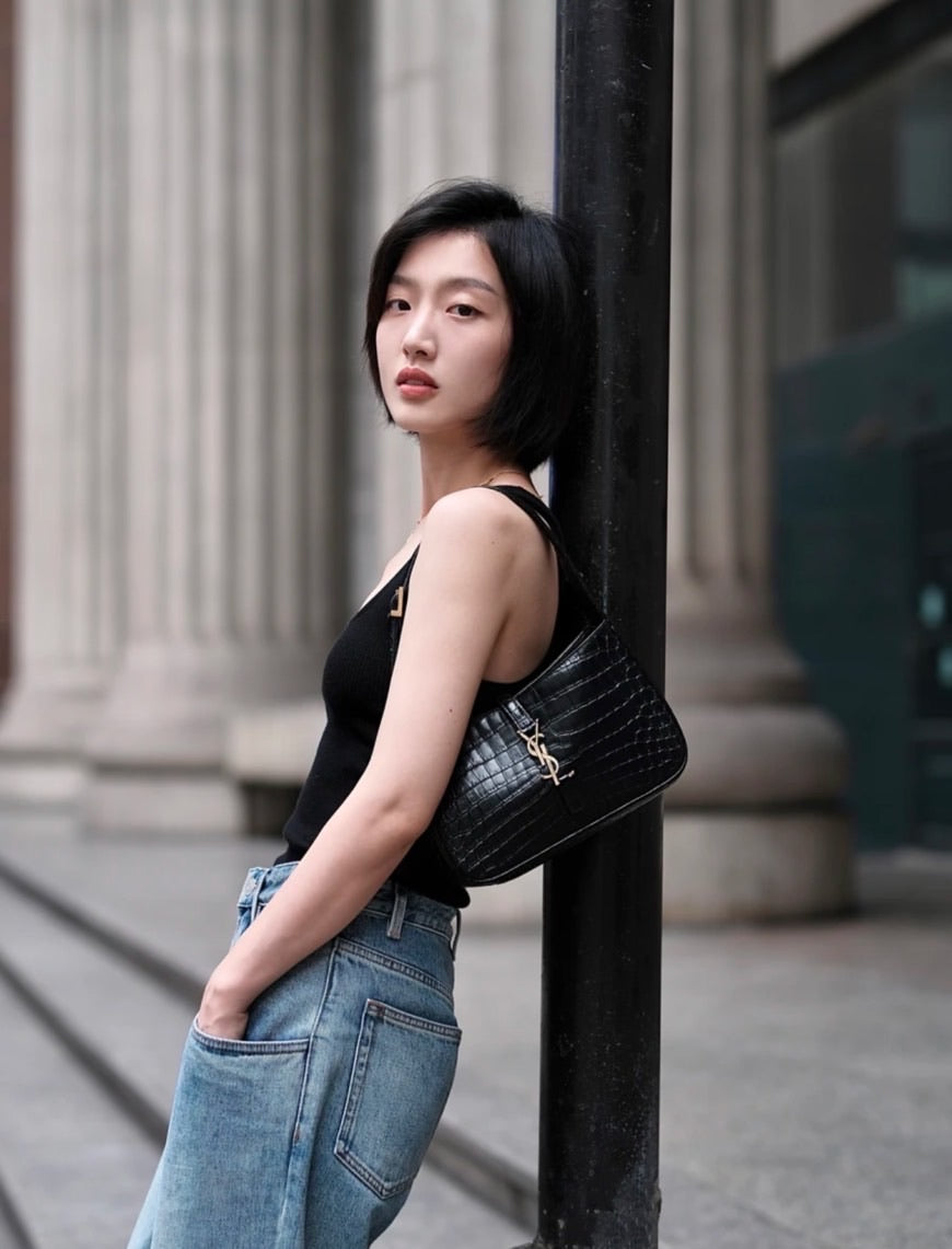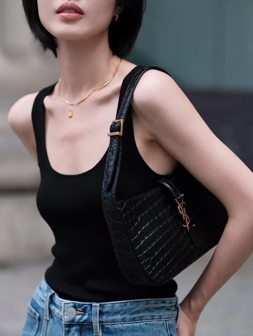 YSL Le 5 à 7 Hobo 鱷魚壓紋亮皮腋下包/1950E2100 🉐74500🇪🇺